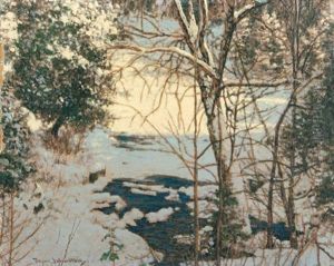 Snowy Riverbank On A Winter's Day
