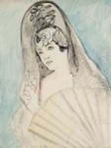 Espagnole Crayon Et Fusain Sur Papier