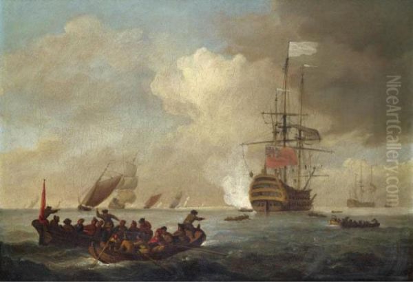 Bring the timeless beauty of Francis Swaine's A Man-of-war Firing A Salute into your home with a handmade oil painting reproduction. Carefully recreated on canvas by skilled artists using traditional techniques, this piece captures the delicate brushwork, subtle light, and vibrant color of the original masterpiece. With museum-level quality and rich texture, it brings elegance and artistic depth to any space. Enjoy free shipping and make this masterpiece a part of your personal collection.