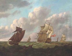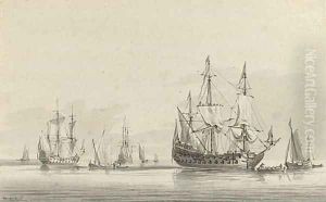 An English Man Of War Off The Coast Preparing To Anchor