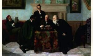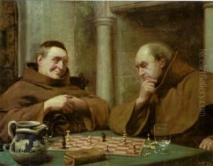 A Game Of Chess Oil Painting by Francis Sydney Muschamp