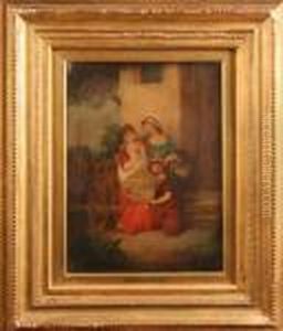 A Girl Fetching Water From A Stream, A Cottage Beyond