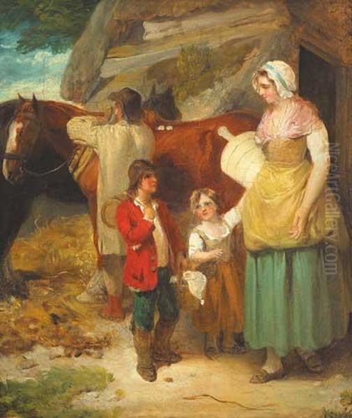 A Dairy Maid With Farmer, His Horse And Twochildren