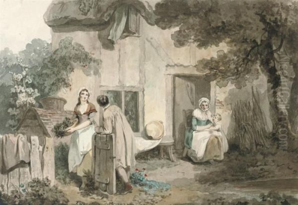 Figures Outside A Cottage Oil Painting by Francis Wheatley