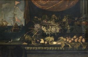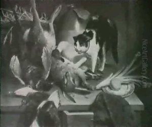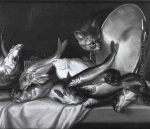 An Allegory Of The Month Of December, With A Cat And A Still Life Of Fowl, Fish, Sweetmeats And Chocolate On A Stone Ledge