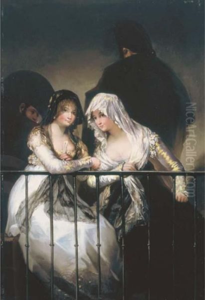 Majas En El Balcon Oil Painting by Francisco Goya Fuendetodos
