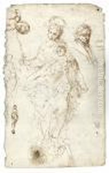 A Sheet Of Studies With The Madonna And Child, A Head Of A Male Saint, Two Figure Sketches And A Separate Study For The Christ Child