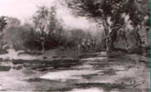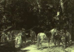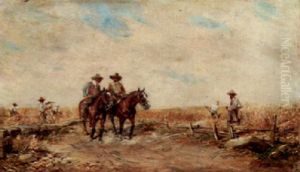 Jinetes Velazquenos Recorriendo Un Campo Con Segadores