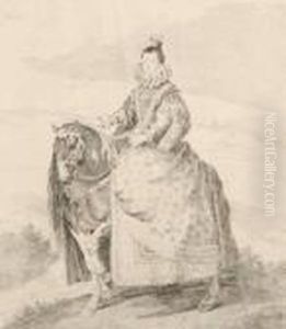Portrait Of Queen Maria Louisa Of Spain, Half-length, In Anembroidered Dress, An Order Sash And A Feathered Hat, Standing By Acrown, Holding A Fan