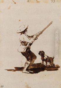 A Hunter Loading His Gun, Accompanied By His Dog