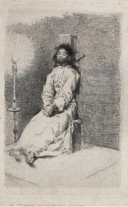 Portrait Of A Peasant Man Wearing A Pleated Orange Doublet And Holding A Spear