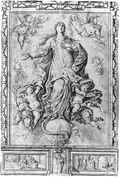 Project for a Banner The Virgin Immaculate Conception with Scenes of the Birth of the Virgin and the Presentation of the Virgin at the Temple