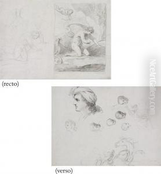 Narcissus Looking At His Reflection In The Water (recto); Studies Of Heads (verso)