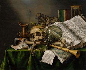 For the best visual impact, hang your Vanitasstilleben at eye level in a well-lit area, preferably with indirect natural light or soft artificial lighting. Avoid direct sunlight and high humidity areas to protect the artwork.
