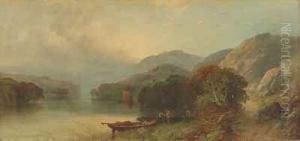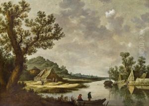 Flusslandschaft Mit Anglern.