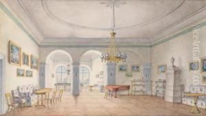 Portrait Of The Hon. Aubrey Beauclerk And Hisfamily, In An Elegant Interior, A View To The Castel Gandolfobeyond