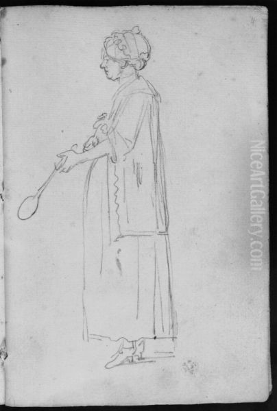 Kvinna hallande en slev. Ingar i skissbok om 46 blad