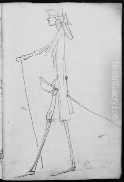 Man med varja och promenadkapp. Ingar i skissbok om 46 blad