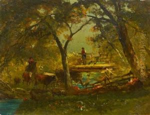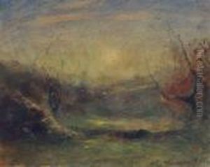 Coucher De Soleil Oil Painting by Francois Auguste Ravier