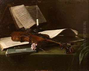 Still Life Of An Inkwell With A Quill, A Seal And Red Lacquer (+ A Portefeuille With Documents And A Crayon Holder; Pair)
