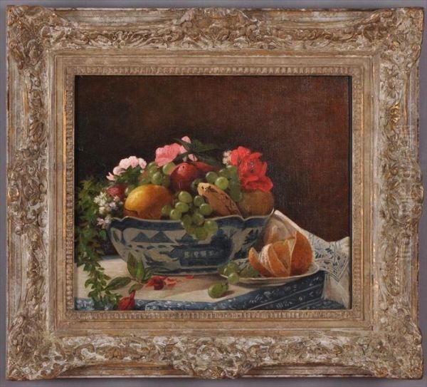 Still Life With Fruit And Flowers And Blue And White Table Decor