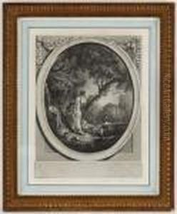 Study Of Two Putti With Swan And Mirror In Cartouche Shaped Frame