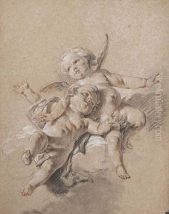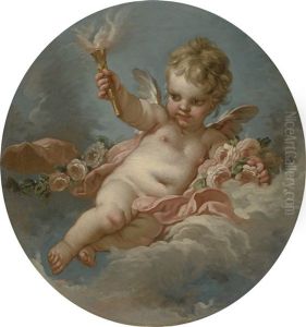 Putto On A Cloud, Holding A Torch