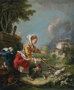 Junges Madchen Beim Huhnerfuttern