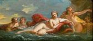 Putti frolicking amidst the sea - en grisaille