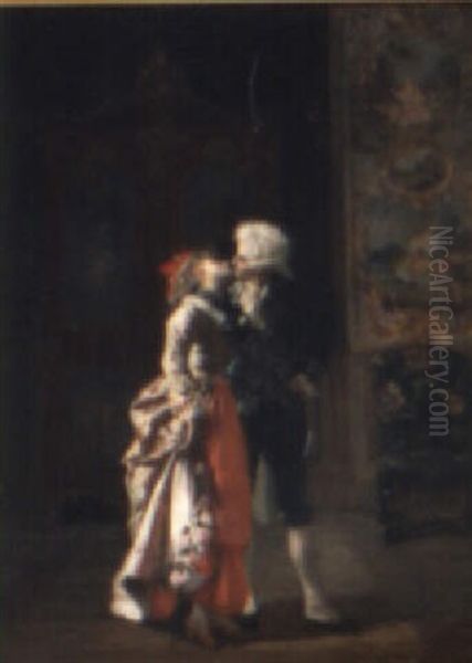 Bring the timeless beauty of Francois Brunery's Interior Scene With Embracing Couple into your home with a handmade oil painting reproduction. Carefully recreated on canvas by skilled artists using traditional techniques, this piece captures the delicate brushwork, subtle light, and vibrant color of the original masterpiece. With museum-level quality and rich texture, it brings elegance and artistic depth to any space. Enjoy free shipping and make this masterpiece a part of your personal collection.