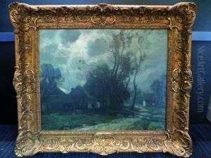A Moonlit Scene With A Farm House And A Haystack Beyond