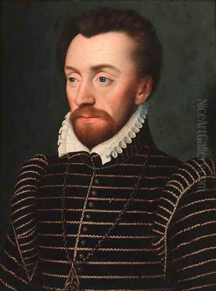 Portrait of Louis I de Bourbon, Prince de Conde (1530-1569), bust-length, in a gold-embroidered doublet