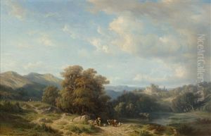 A Vast Landscape With Shepherds And Animals By A Water
