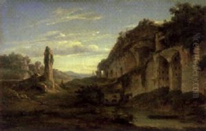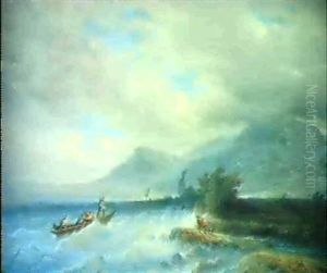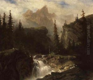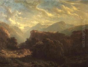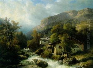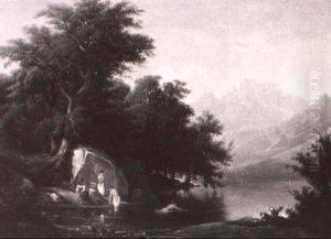 An Alpine Landscape With Figures By A Stream