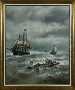 Scene De Naufrage Au Coucher Du Soleil