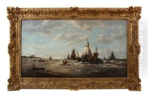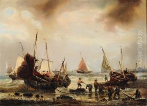 Pecheurs Sur Une Plage Hollandaise
