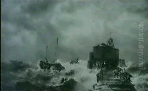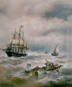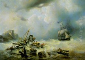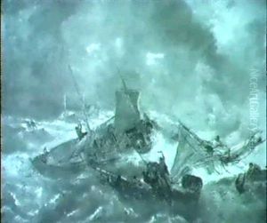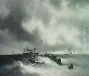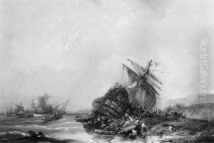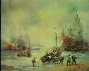 Sailors Engaged In A Battle At A Shore, A Capsized Man-o'-war Beyond