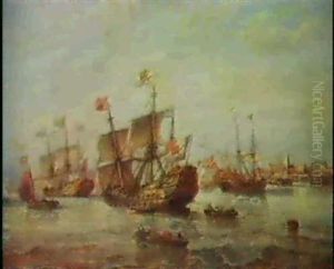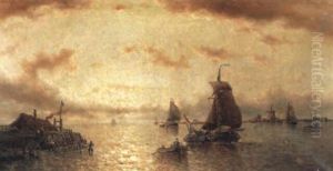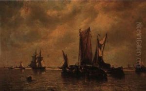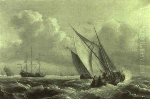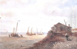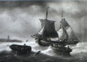 A Coastal View With Fishermen Hauling In Their Ships In A Stiff Breeze Off Nieuwport (?)