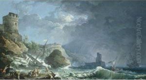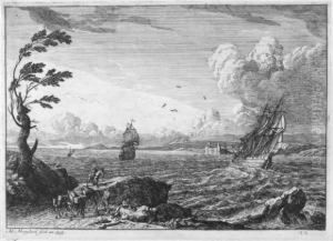 Paysage Cotier Avec Pecheurs Sur Une Mer Agitee