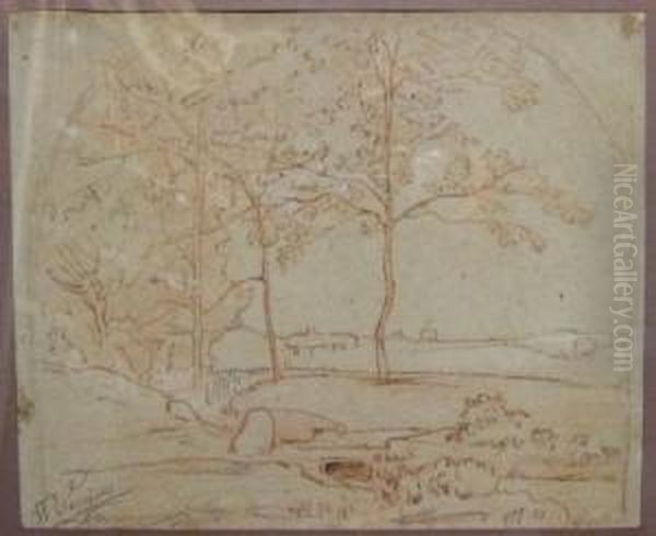 "paysage" Sanguine, Signee En Bas A Gauche.