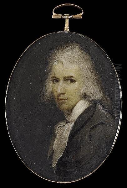 A Gentleman, Wearing Dark Grey Coat And Loosely Tied White Cravat, His Long Hair Powdered And Worn
