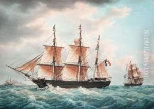 A Squadron Of French Ships-of-the-line Anchored Offshore