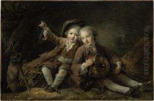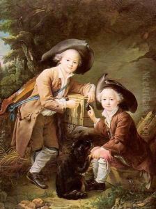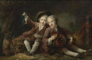 The Children Of The Duc De Bouillon Dressed As Montagnards; One Playing A Hurdy-gurdy, The Other Playing With A Marmot On A Ribbon