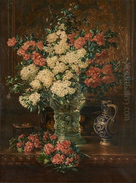 Aubepines Blanches Et Roses Et Verre De Boheme