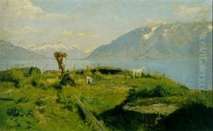 Pecheurs Au Bord Des Rives Du Lac Leman