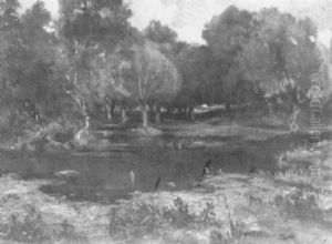 Flusslandschaft Mit Anglern, Hirtin, Kuh Und Hund