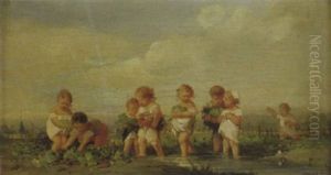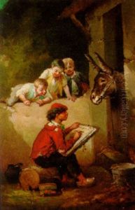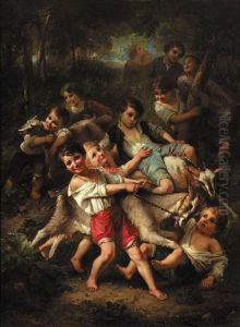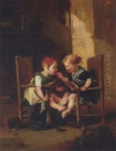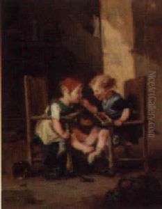 The Bird Nest - Genre Scene With Two Young Girls
