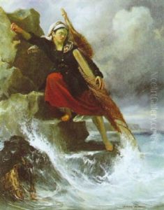 En Fiskerpige Overraskes Af Havet