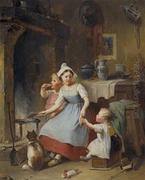 Kucheninterieur Mit Mutter Und Ihren Kindern (pair)