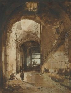 Granet's works often depicted architectural interiors, especially those of ecclesiastical buildings, which he rendered with a sense of tranquility and atmospheric perspective. One of his most famous works is 'The Choir of the Capuchin Church in Rome,' which showcases his ability to capture light and shadow to create a serene and contemplative mood.